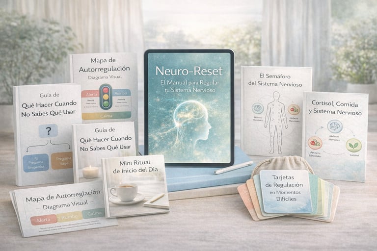 Al acceder a Neuro-Reset, obtendrás un manual completo y materiales complementarios diseñados para ayudarte a regular tu sistema nervioso de forma práctica, progresiva y aplicable a la vida diaria.