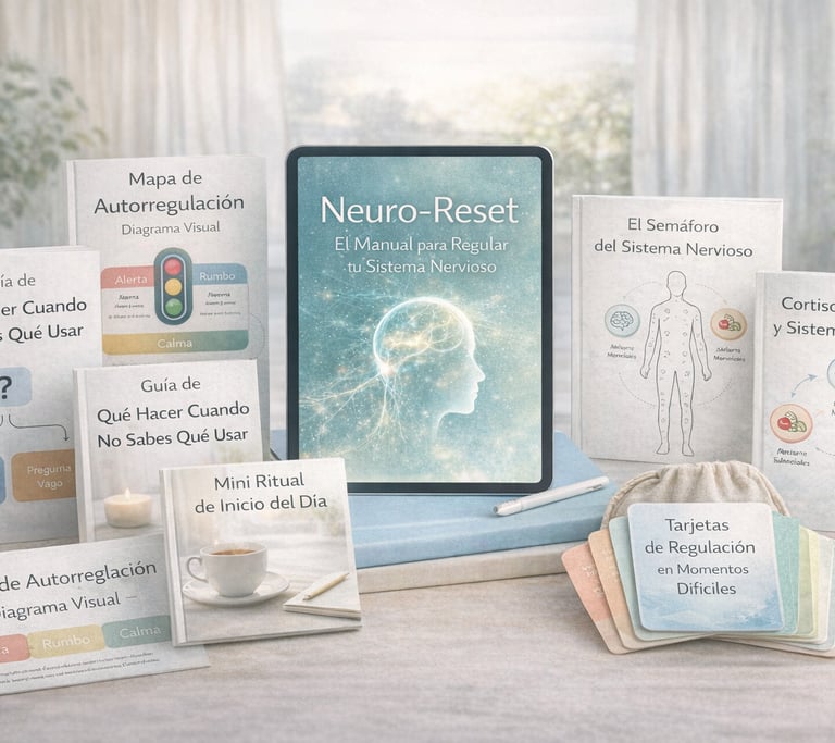 Neuro-Reset es un manual práctico que te ayuda a entender cómo tu cuerpo responde al estrés y a regular tu sistema nervioso de forma simple, gradual y sin forzarte.